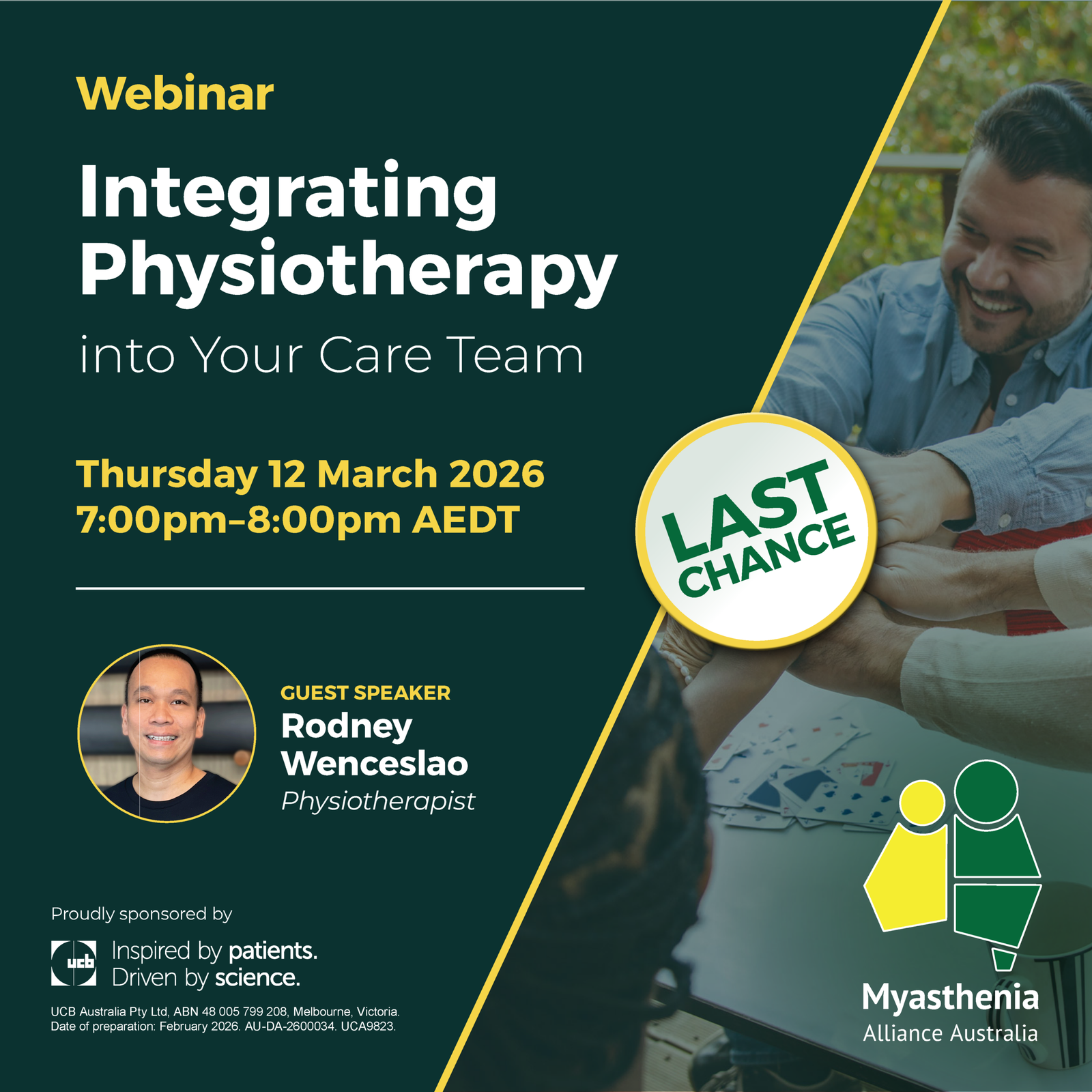 Register here for the Myasthenia Alliance Australia (MAA) Integrating Physiotherapy into Your Care Team with Physiotherapist Rodney Wenceslao.