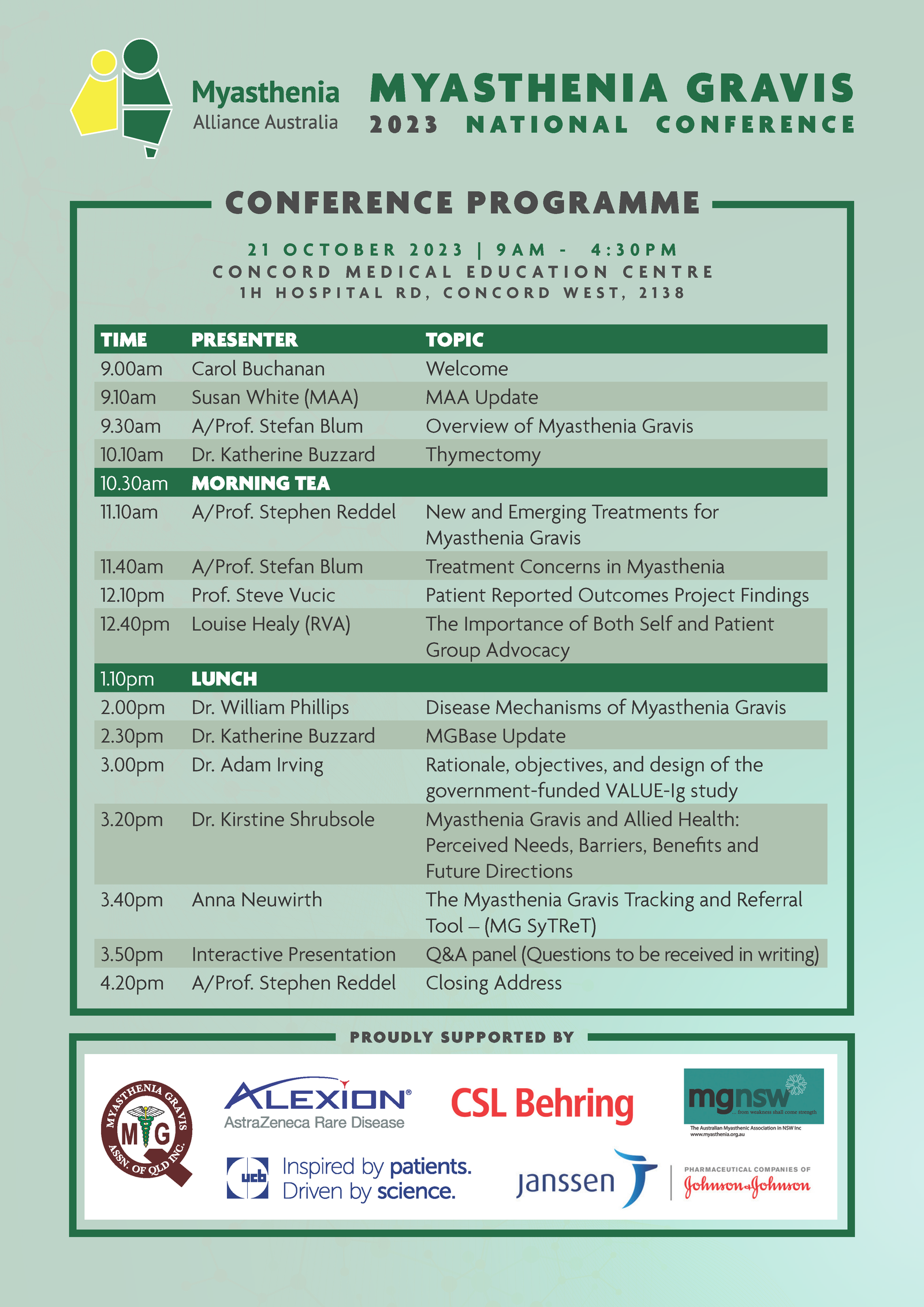 ✅ Learn from Leading Experts: Stay informed about the latest research, treatments, and advancements in MG care.