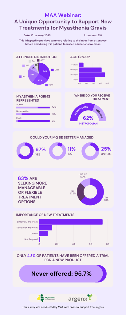 The MAA captured some invaluable information about our community as a part of the webinar hosted in January 2025. The webinar heard from leading Specialists who explained the new treatments which are currently seeking PBS funding. This webinar can be viewed here.